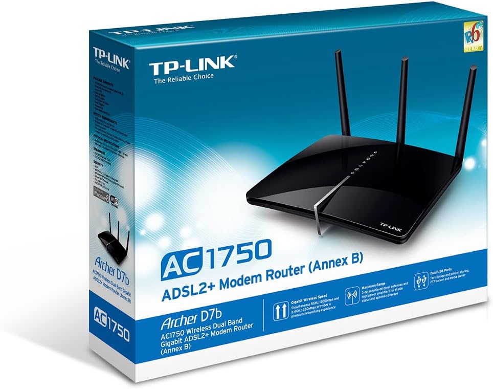 Archer D7b Ac1750 Wireless Dual Band Gigabit Adsl2 Modem Router Annex B Tp Link Norway