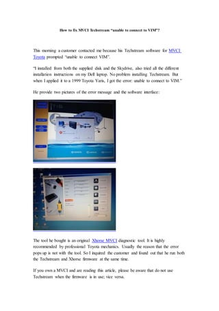 How To Fix Mvci Techstream Unable To Connect To Vim